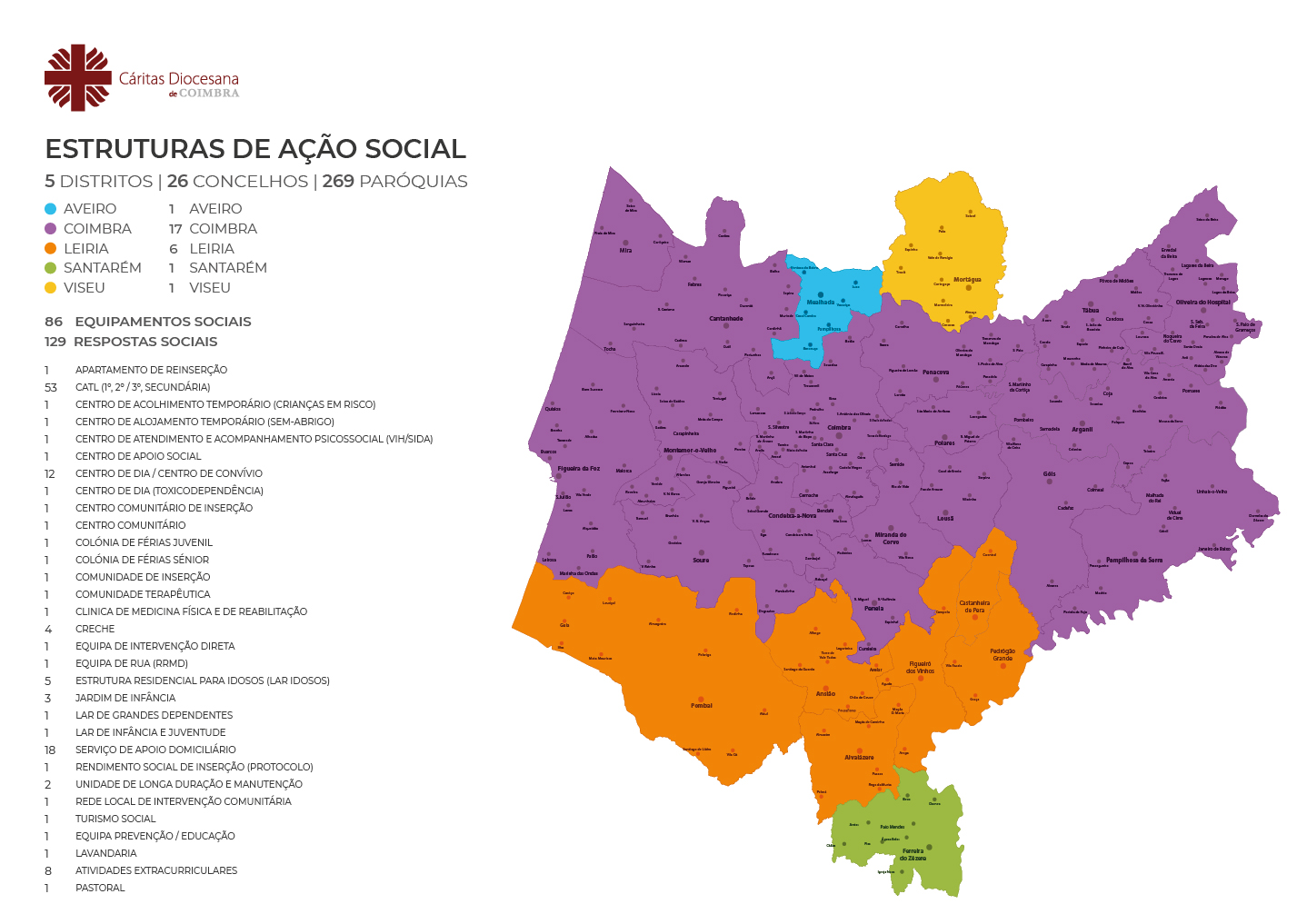 A Cáritas Diocesana de Coimbra é uma Instituição Particular de Solidariedade Social que apoia de forma transversal as comunidades nos âmbitos social, saúde, educação e pastoral, em cinco distritos da região Centro.